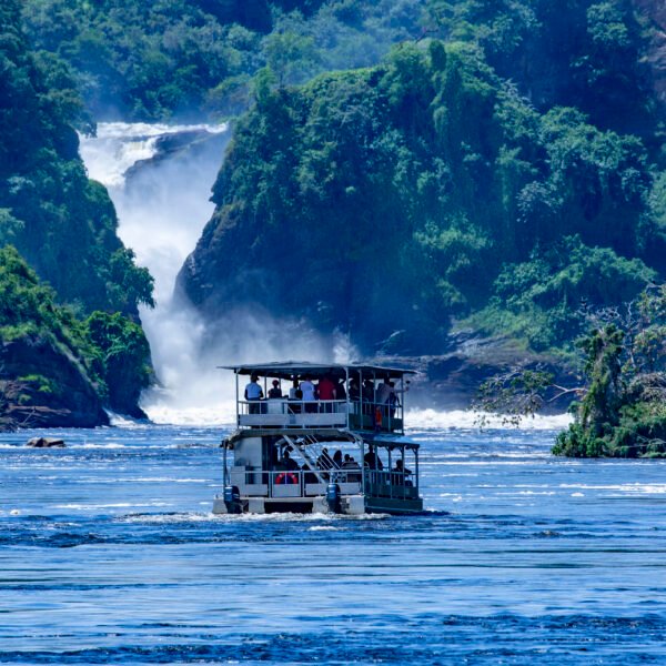 After an early breakfast in Kampala or Entebbe, drive east through Mabira Forest to Jinja, Uganda’s adventure capital. On arrival, join a professional rafting crew for an adrenaline-pumping full-day white water rafting experience on the Nile tackling up to Grade 5 rapids with safety kayakers and guides. After rafting, relax at your riverside lodge.