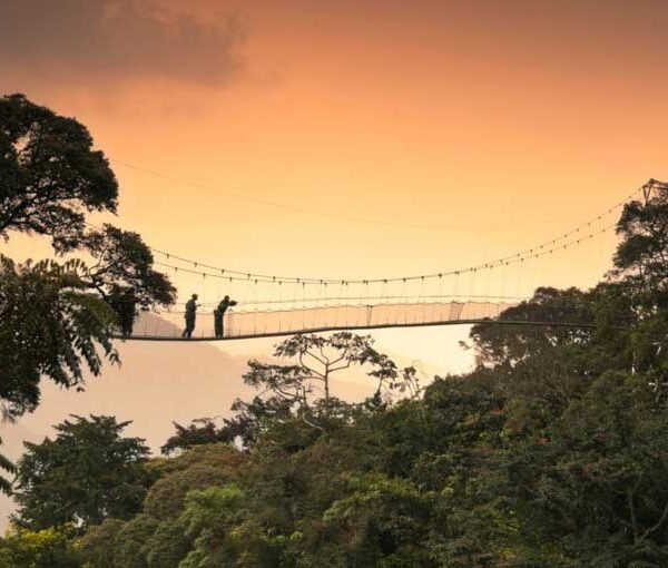 After breakfast, embark on the Nyungwe Forest canopy walk  a suspended bridge that offers spectacular views above the forest canopy and a chance to spot rare birds and monkeys. After lunch, enjoy leisure time at your lodge or choose an optional guided waterfall hike within the park. Dinner and overnight at your lodge.