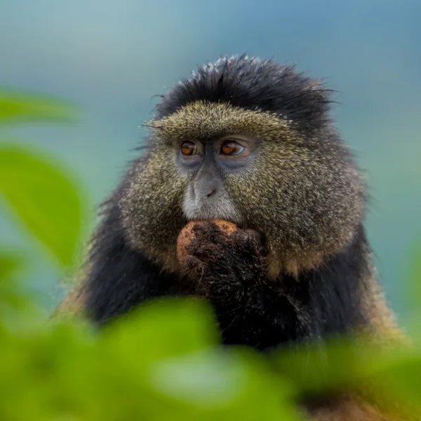 Golden monkeys are highly energic and continuously in motion, jumping from branch to branch, chasing each other as well as feeding on bamboo shoots. Their playful behaviour and lively colours make them a favourite for wildlife lovers and photographers. The golden monkey trekking complements the chimpanzee trekking thus offering a light but rewarding wildlife safari experience.